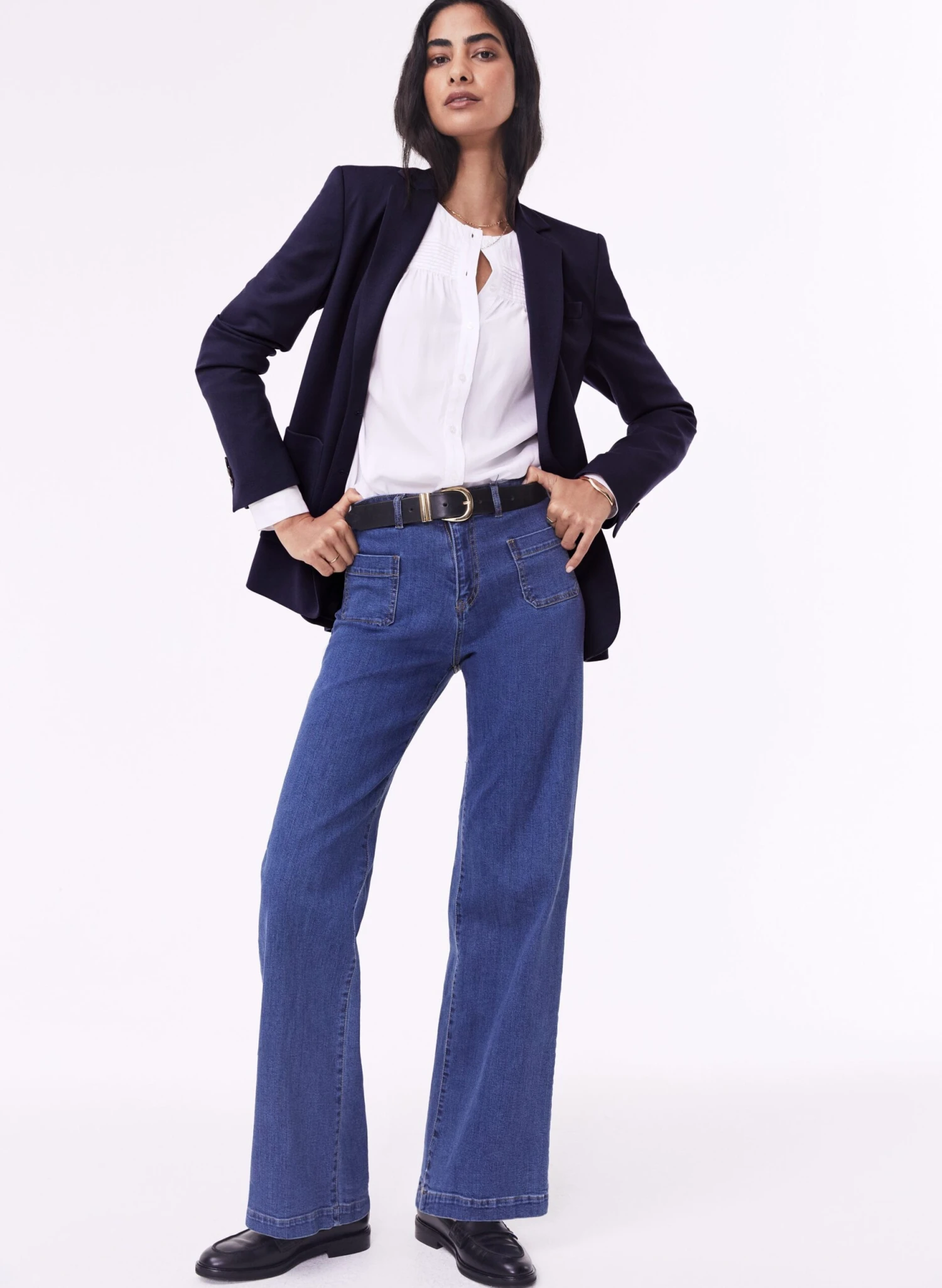 - Tailored style with shaped waist