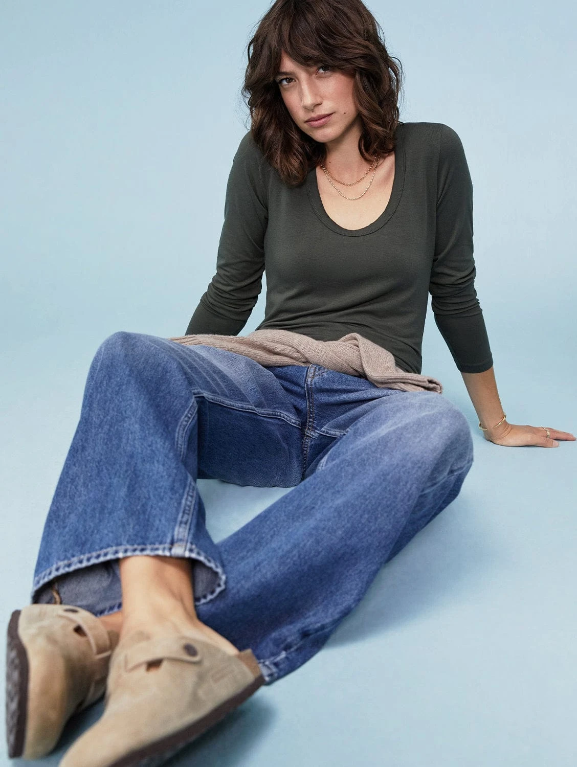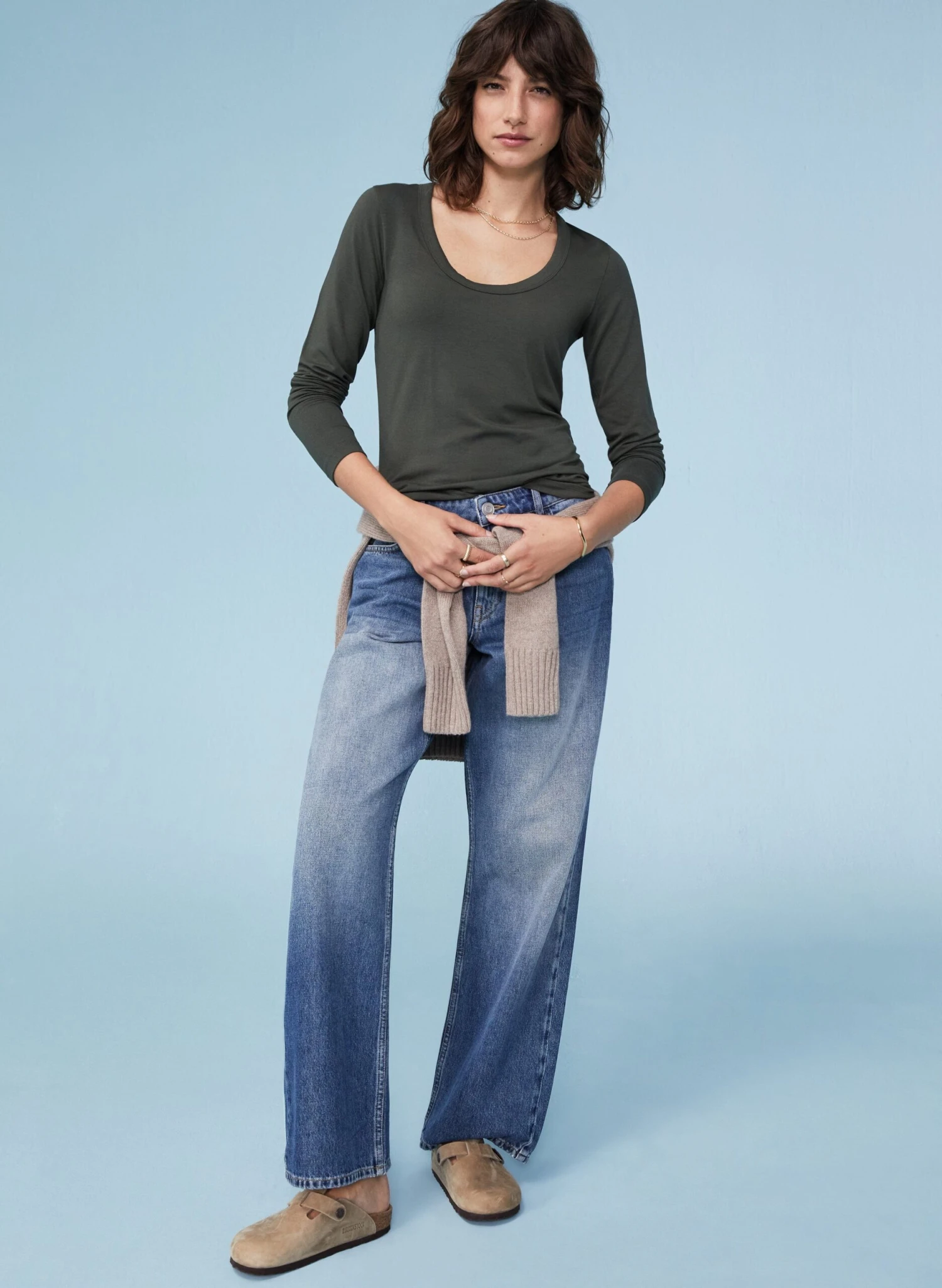 Following the popularity of this short-sleeve Scoop Top comes this sister style with full length sleeves. Cut with a generous (and innately elegant) scoop neckline and fitted sleeves, this is a neat, feminine basic. Made from our favourite, responsibly sourced jersey and with just the right amount of stretch, it’s a staple your jeans and chinos will love.