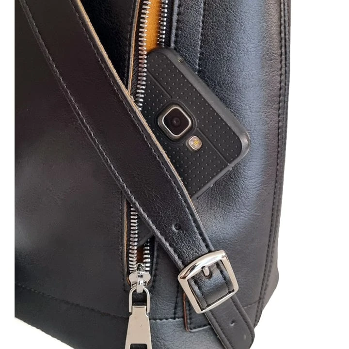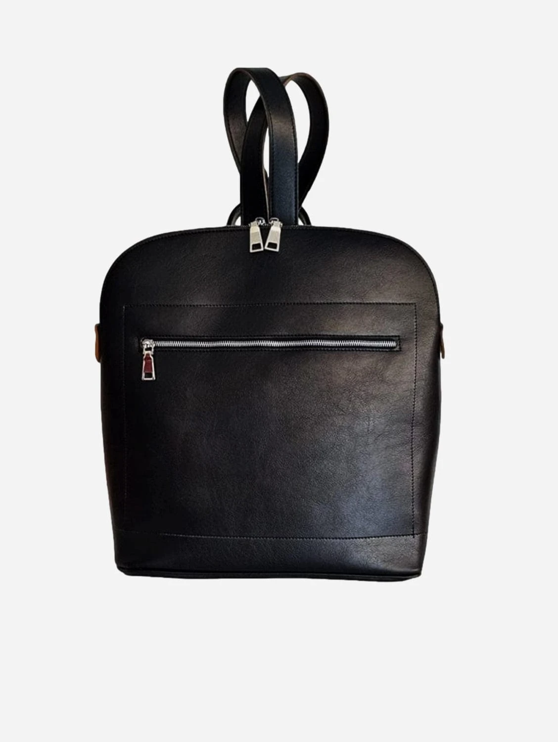 Charming and stylish vegan backpack, ideal as an elegant companion for business, special occasions or travel. Thanks to the large exterior zippered compartment on the front and two smaller zippered compartments on the back, you have everything quickly at hand. The interior offers plenty of space and features two open side pockets for smartphone, keys, passport etc. The beautiful NOAH logo is removable and provided with a ring, so it can also be used as a chic keychain.