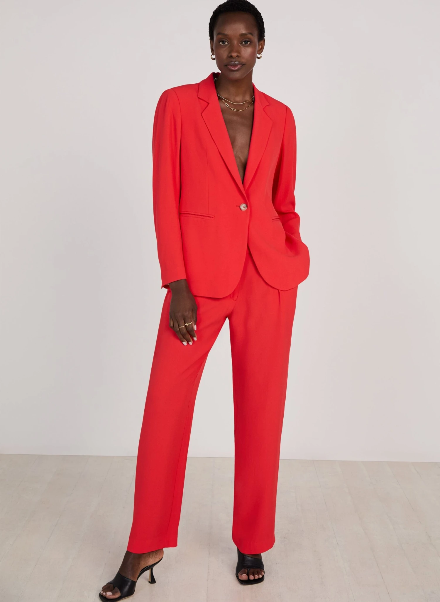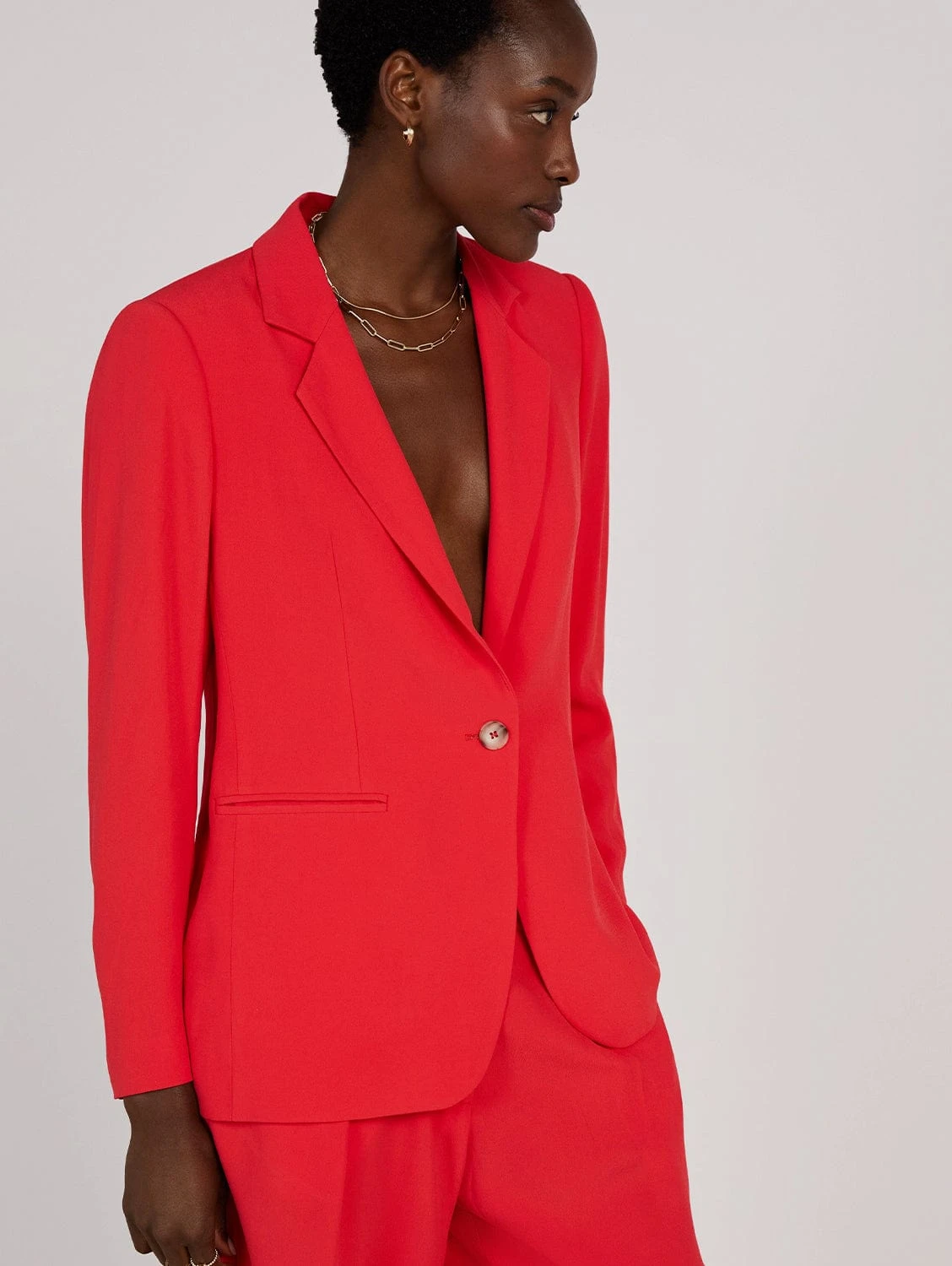 Whether it’s with your favourite jeans or a pair of tailored trousers (like the matching Anthea style), the Bethany Blazer will catapult whatever you’re wearing into a whole new league. Made from Ecojilin, a clever fabric made out of recycled cotton fibres, it boasts a matte, crepe finish. Cut for a drapey, boyfriend-style fit, this is a feelgood layer to turn heads in!