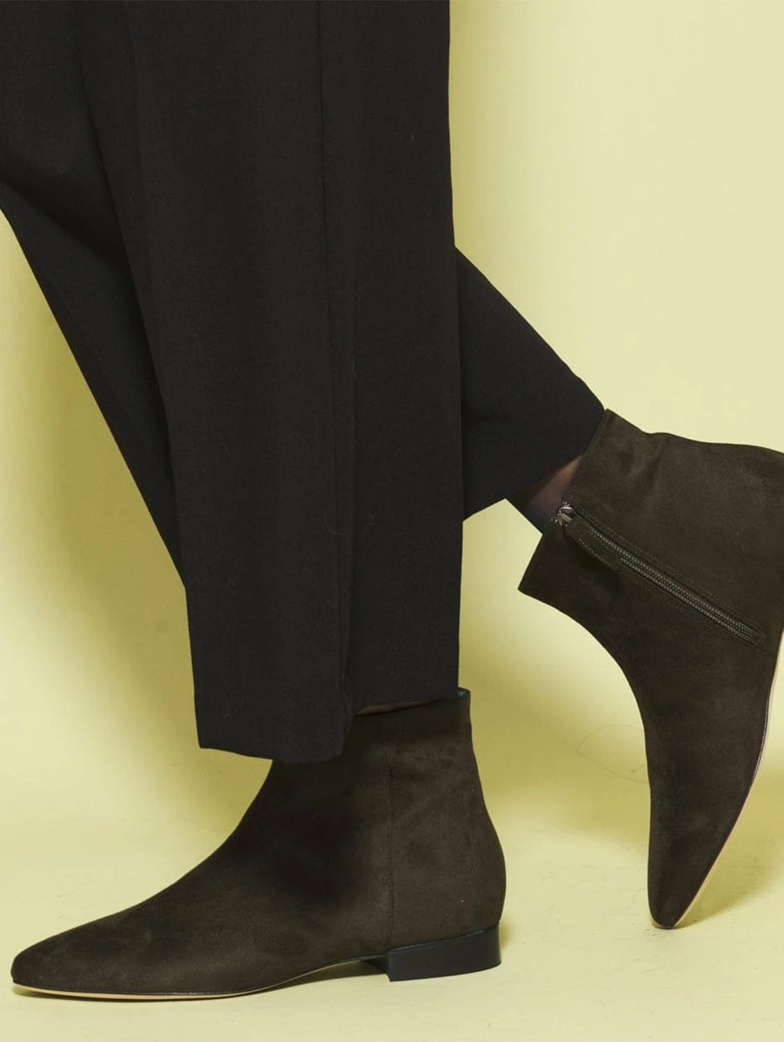 Chiara is a boot with a small heel, with a delicate and fine line. You can wear it with trousers as well as with a dress. It is comfortable while remaining refined and available in 5 vegan suede-like colours.