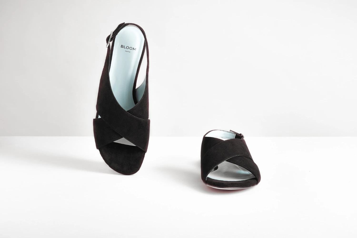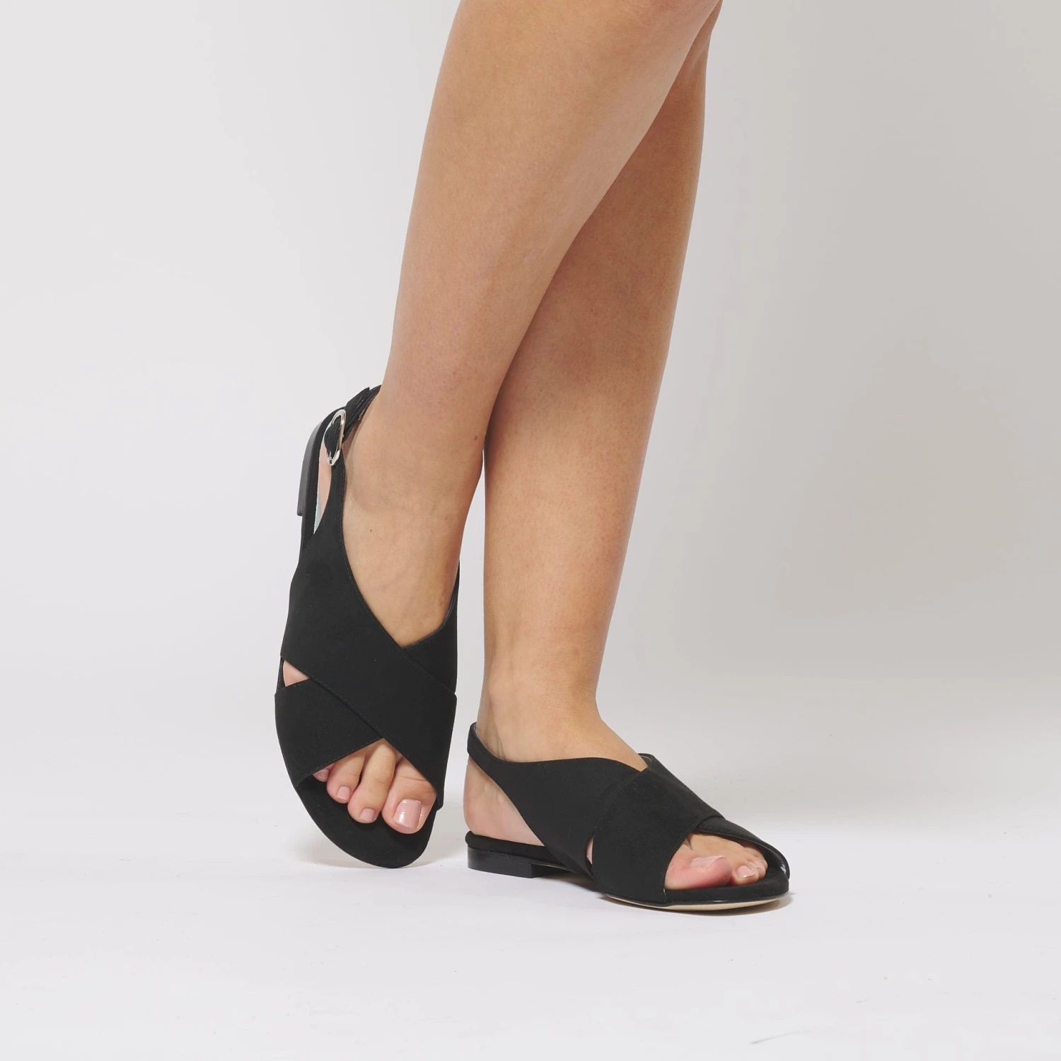 Sandals in Black made of vegan Suede – Comfortable while remaining elegant with its crossed straps. Â