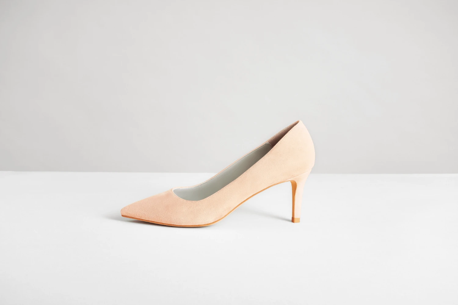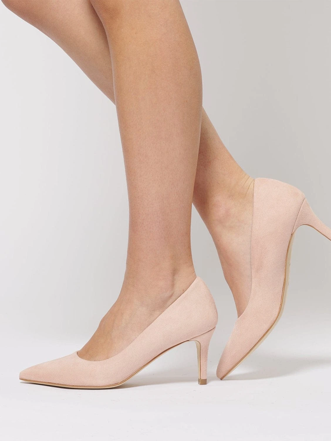 Timeless classic chic pumps with a touch of modernity in blush pink “nude” vegan suede.