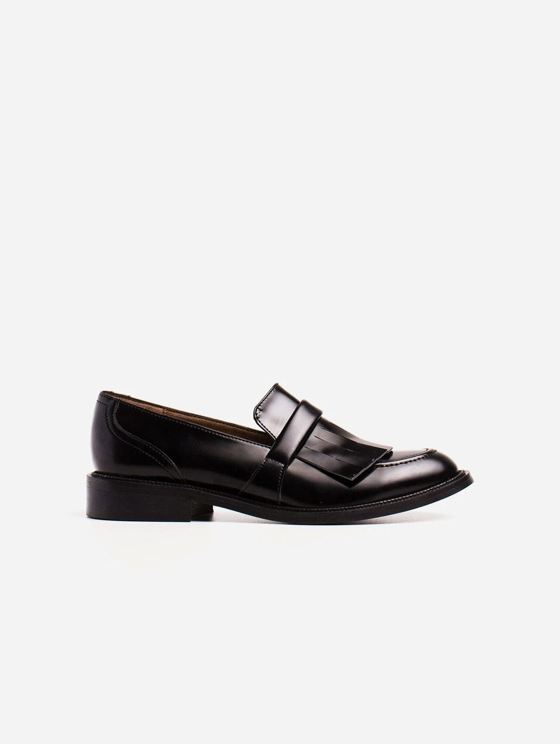 Brina, vegan fringe loafers for women, breathable and water resistant. Made with eco-friendly vegan leather. These vegan shoes are lined with an OEKO-TEX STANDARD 100 certified microfibre manufactured in a system free of CO2 emissions. In addition to being hypoallergenic they are also antibacterial and antimicrobial, which helps prevent the development of odours.