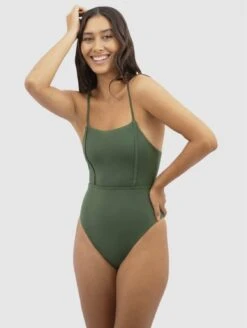 The Byron Bay swimsuit brings back the vintage through simplicity. With strappy straps in a traditional cut on the front, meeting on the back in a unique design to create a luxurious and stylish look with the 1 People logo.