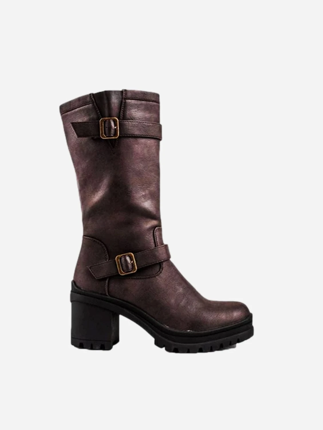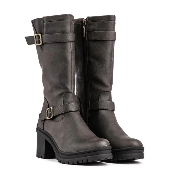 A striking heeled biker boot to see in the new season. Choose vegan this winter with our Chaga knee-high women’s boot. Our simple inside zip boot is made in a vegan-certified factory, is PETA approved & is made using a microfibre upper that’s blended with an applied coating of water-resistant PU.