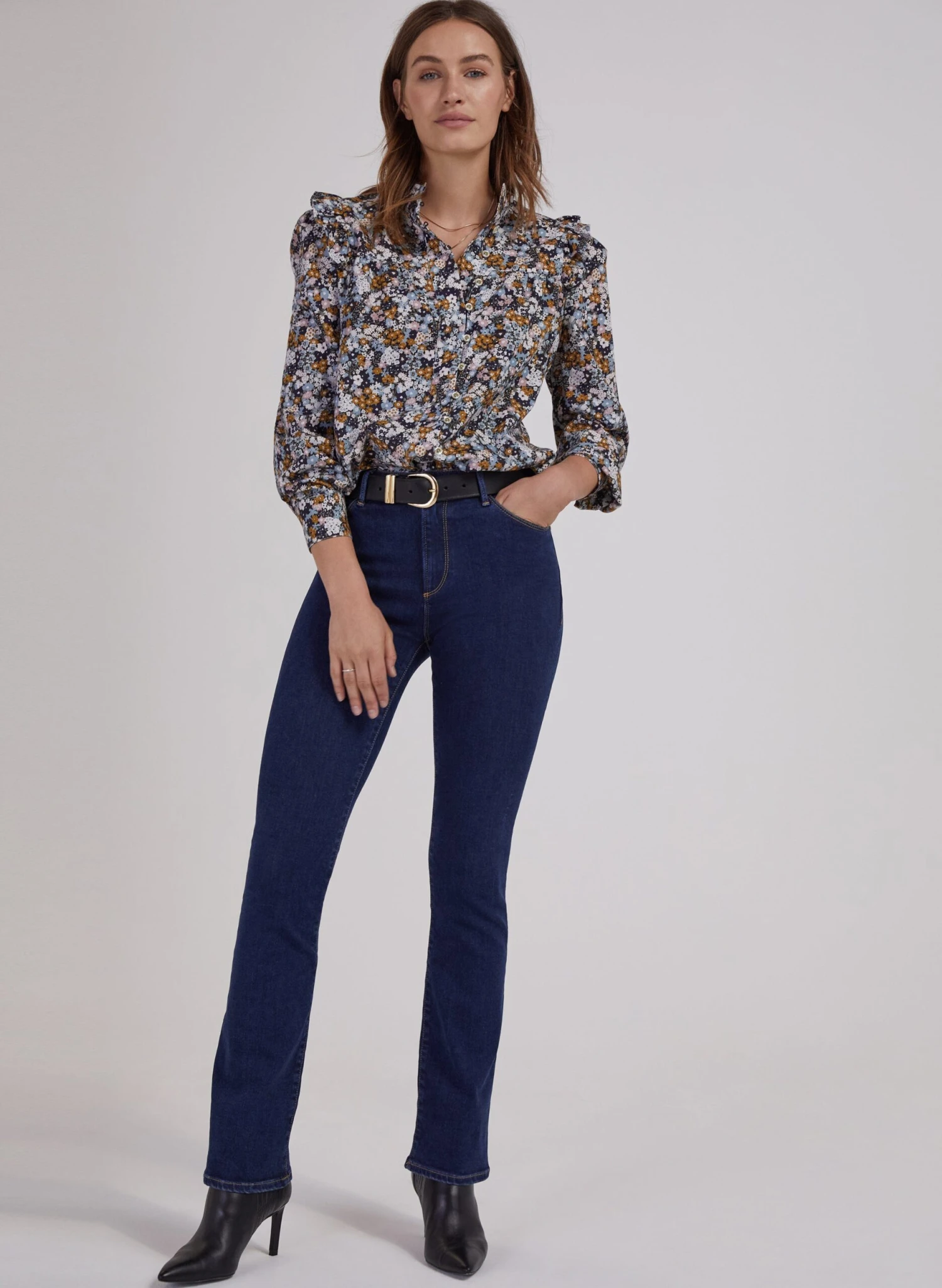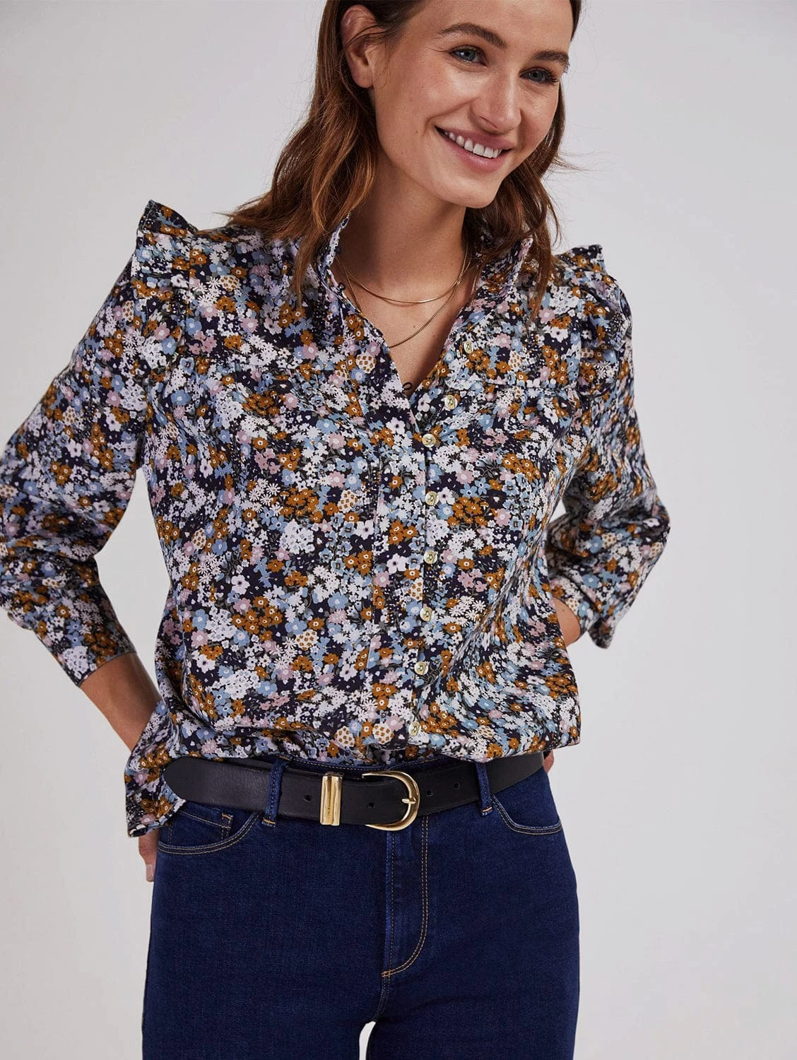 If you have a weakness for pretty, casual blouses, then Famke is set to tick all your boxes! We love this style tucked into high-waisted jeans and trousers, as it comes in a generous, peasant-like shape. Voluminous sleeves and frill-edged shoulders top this charming style off.