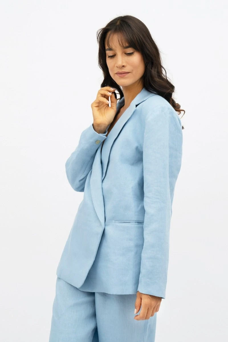 - Clean-lined linen jacket