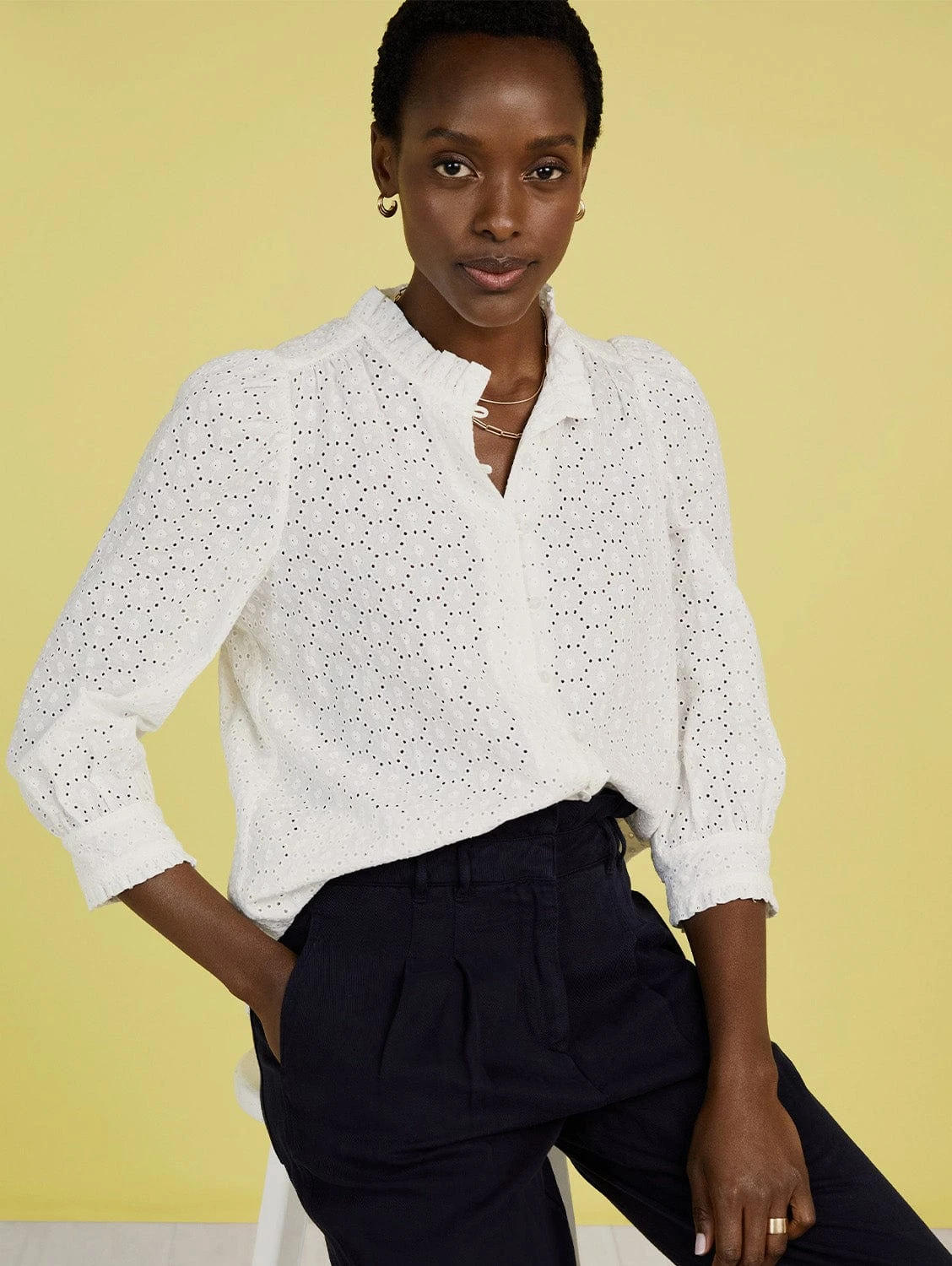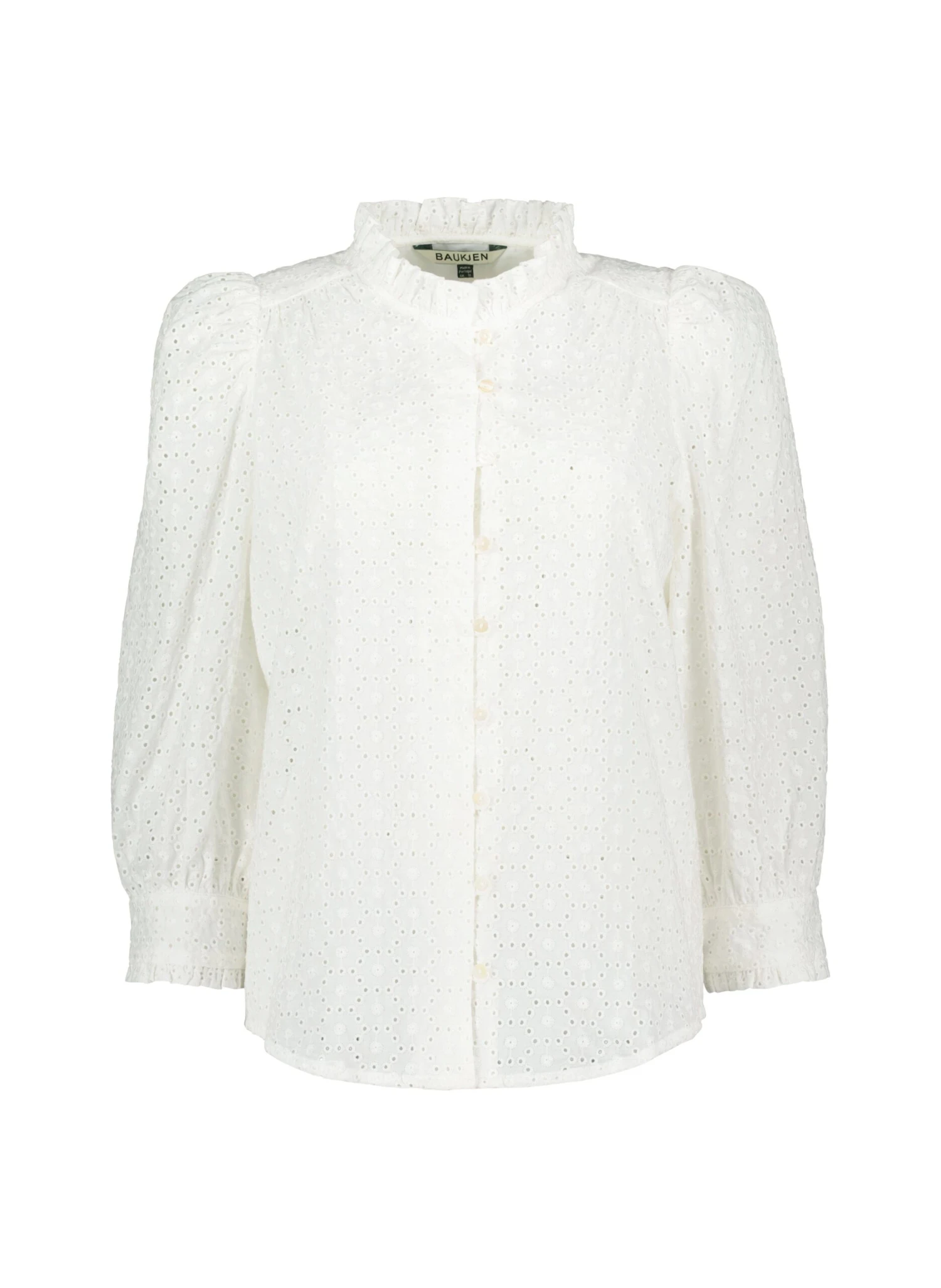 Is there anything prettier than broderie Anglaise? We’ve used this timeless fabric for a whimsical update on the best-selling blouse shape. Unapologetically feminine, Ishbel features a ruffled collar, gently puffed sleeves and frill-edged cuffs. Wear it with indigo denim or sandy-coloured shorts for the perfect seasonal outfit.