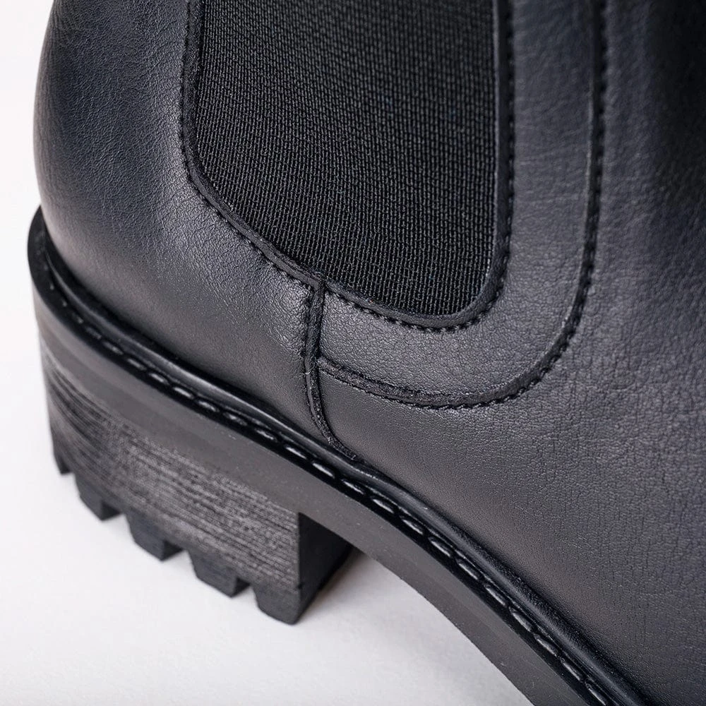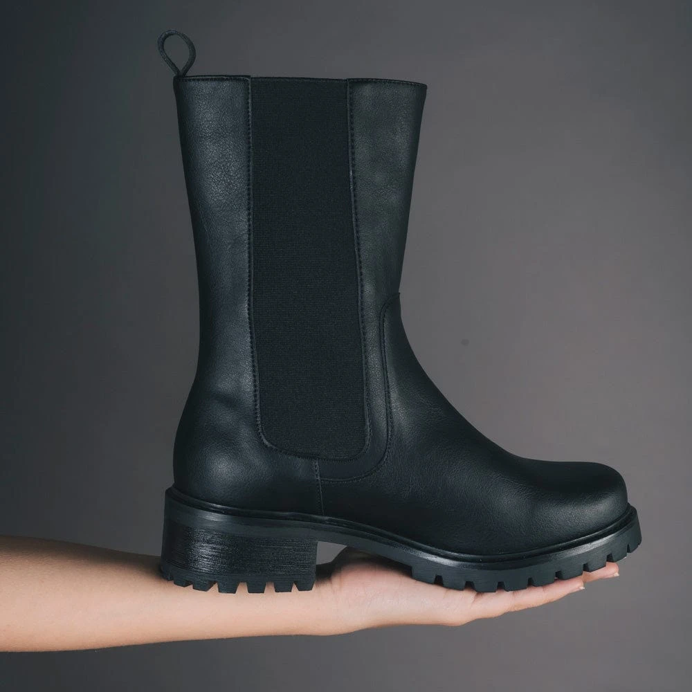 Karen, the Chelsea style mid-calf boots made of Bio Eco Corn vegan leather: a sustainable, innovative, water resistant, light, very durable and cruelty-free material.