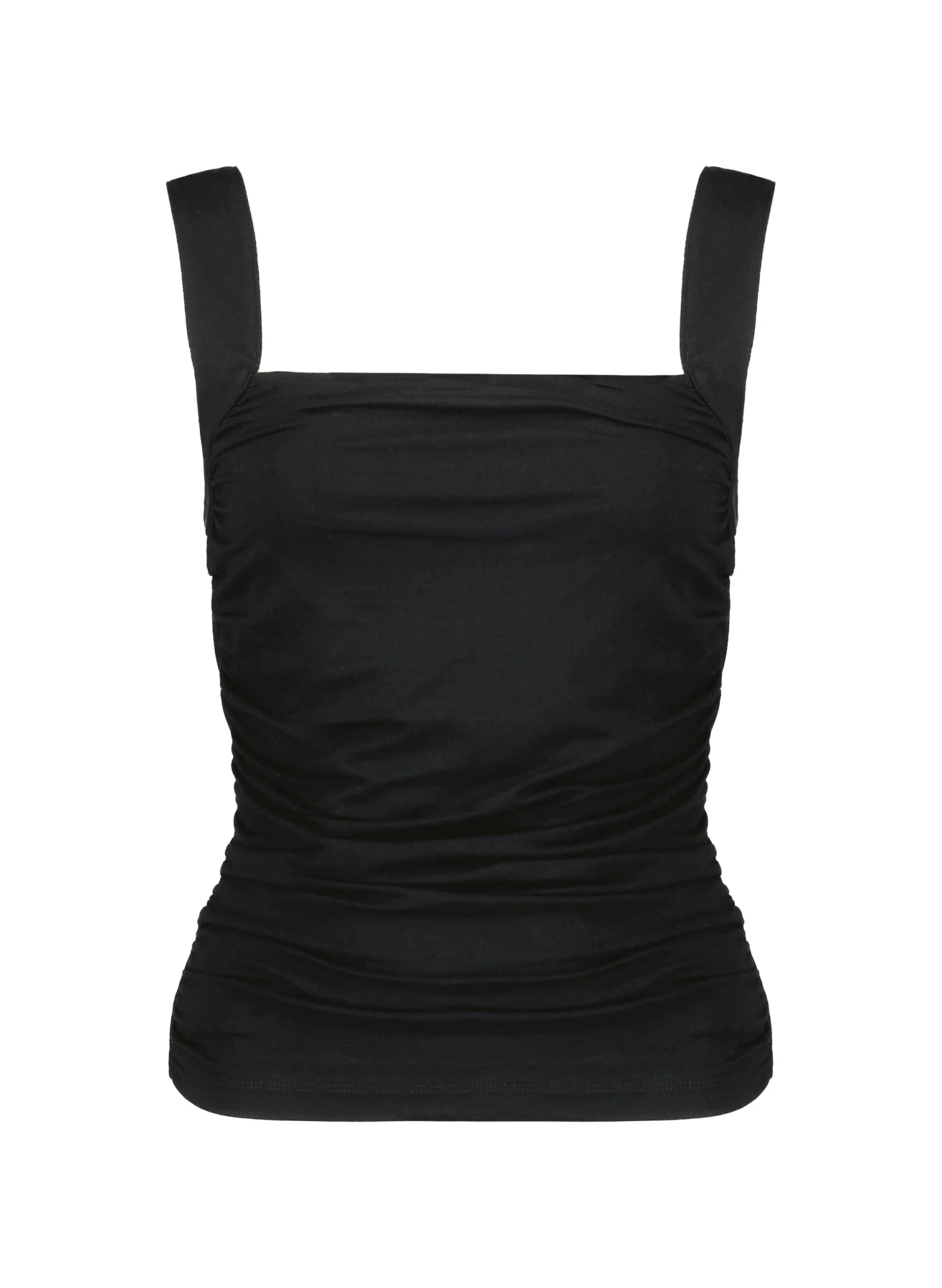 Make some space for Maddie, a seemingly simple but devastatingly chic little black top! This style’s square neckline elegantly frames the bust and is composed of ruched, stretchy jersey for a balcony-style fit, while the back grazes the neck. Wear with jeans, heels and a chunky necklace for an easy date night outfit. Have fun!