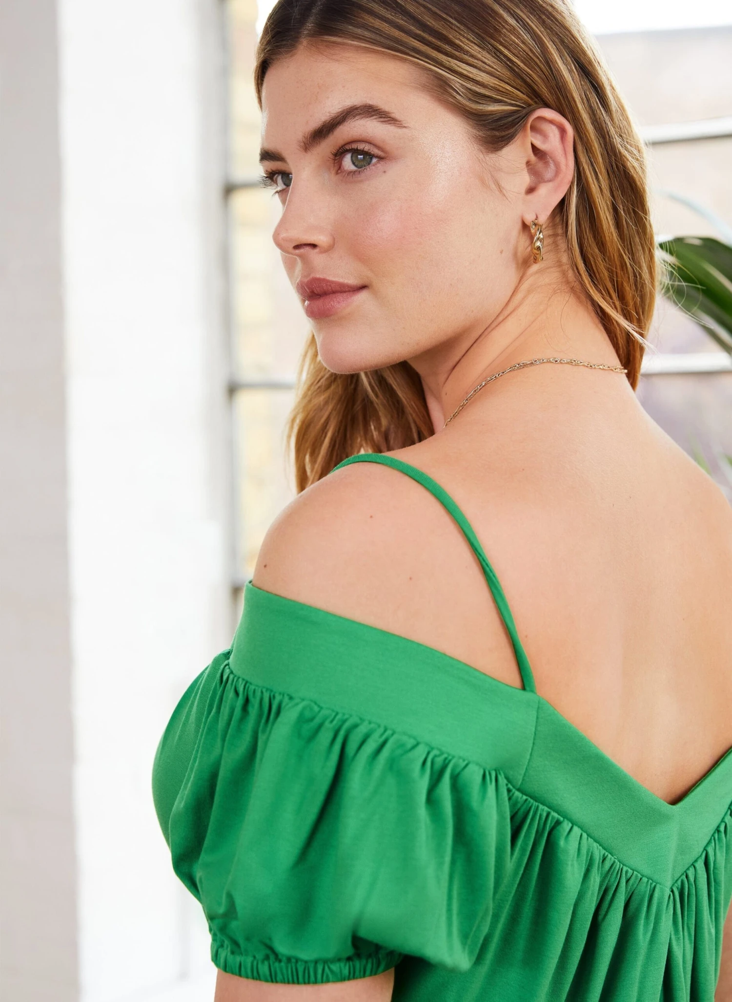 An off-the-shoulder top with a twist, Margaux’s spaghetti straps mean this style stays firmly in place. Its sweetheart-shaped neckline is so flattering, and the demi-sleeves cover the tops of the arms. Made from eco-friendly jersey, it’s all you need to elevate shorts or jeans.