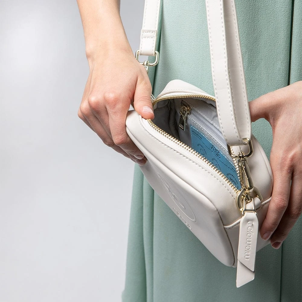 Finally, a practical and cool mini bag that you can wear all day with ease! Spacious enough to accompany you on a short walk around town, or to a coffee with friends, the Mimi camera bag with adjustable and removable shoulder strap is embellished with Mio Mojo’s emblematic embossed logo on the front and light gold nickel-free metal details.