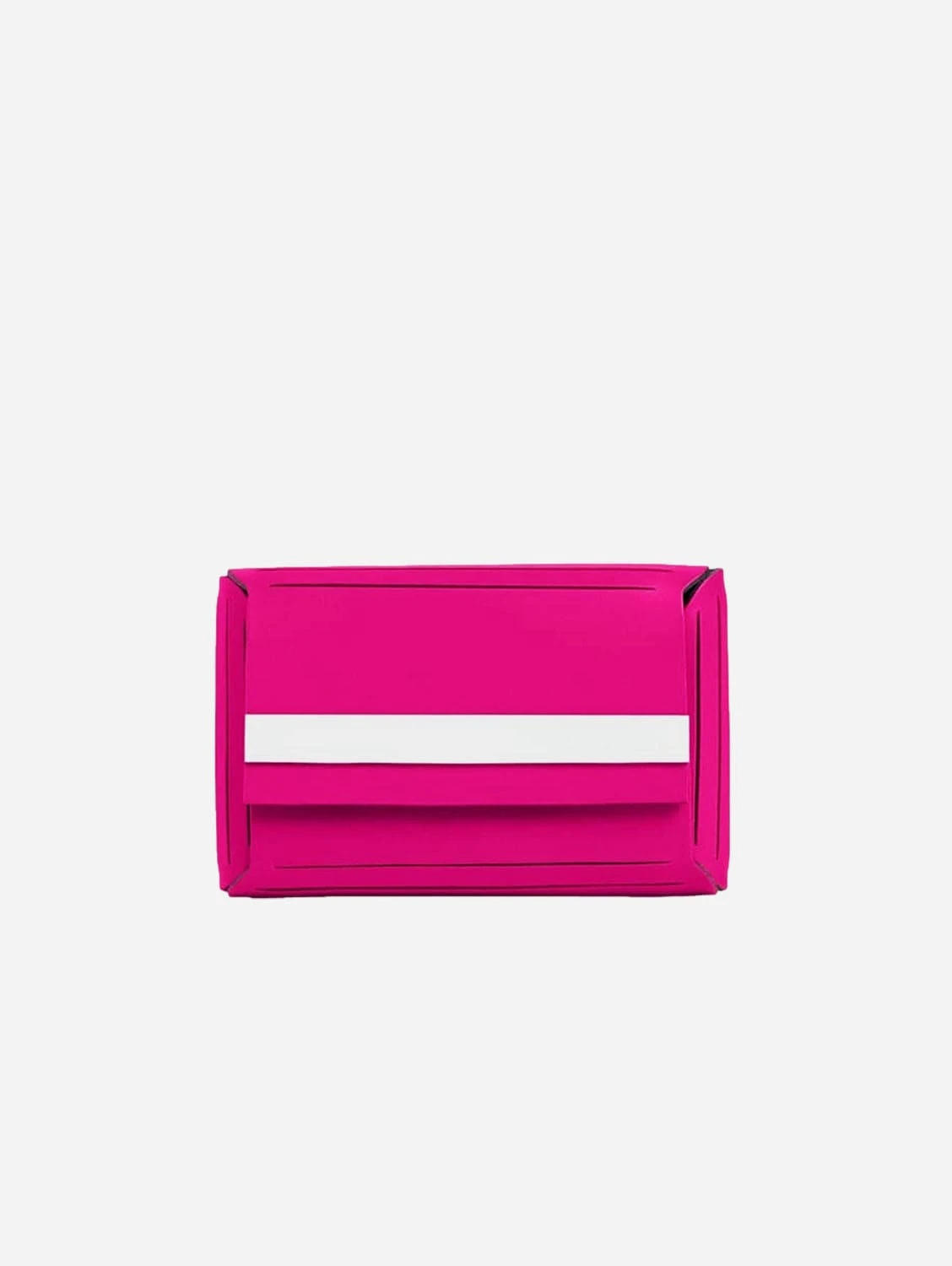 The Hemincuff Origami coin case features a contrasting stripe front accent and silver metal snap hardware. Handcrafted with recycled vegan material, this case is made using an origami folding technique that does not utilize any stitching.