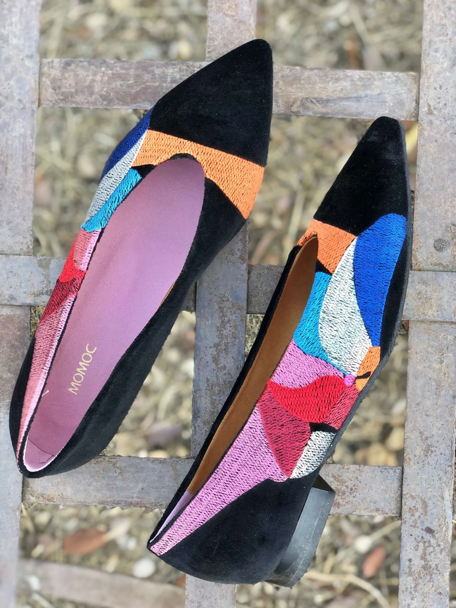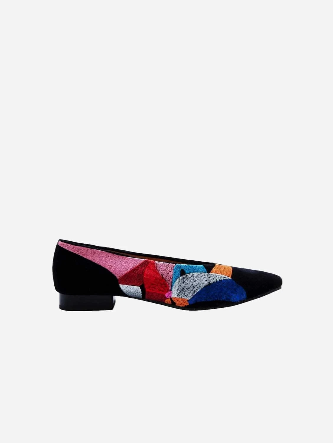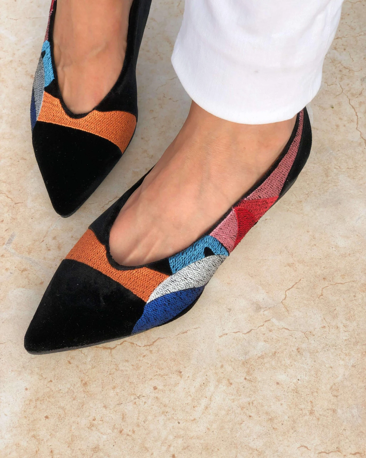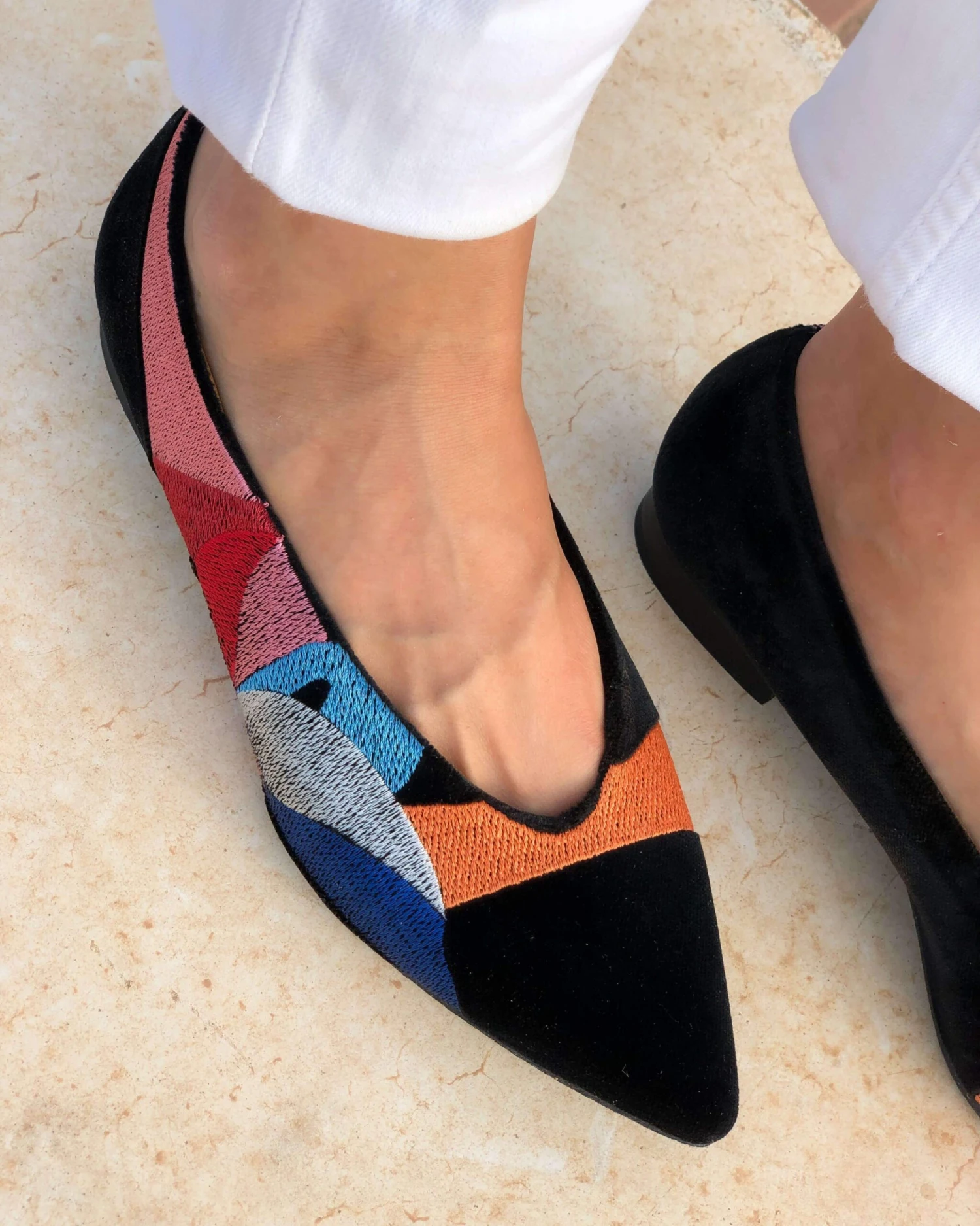 Fun embroidery on black velvet. These original and feminine ballerinas are perfect to brighten up your day.