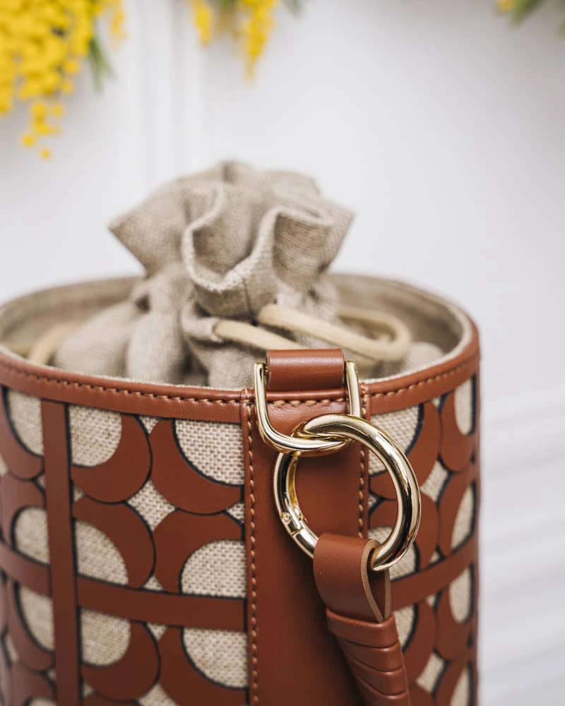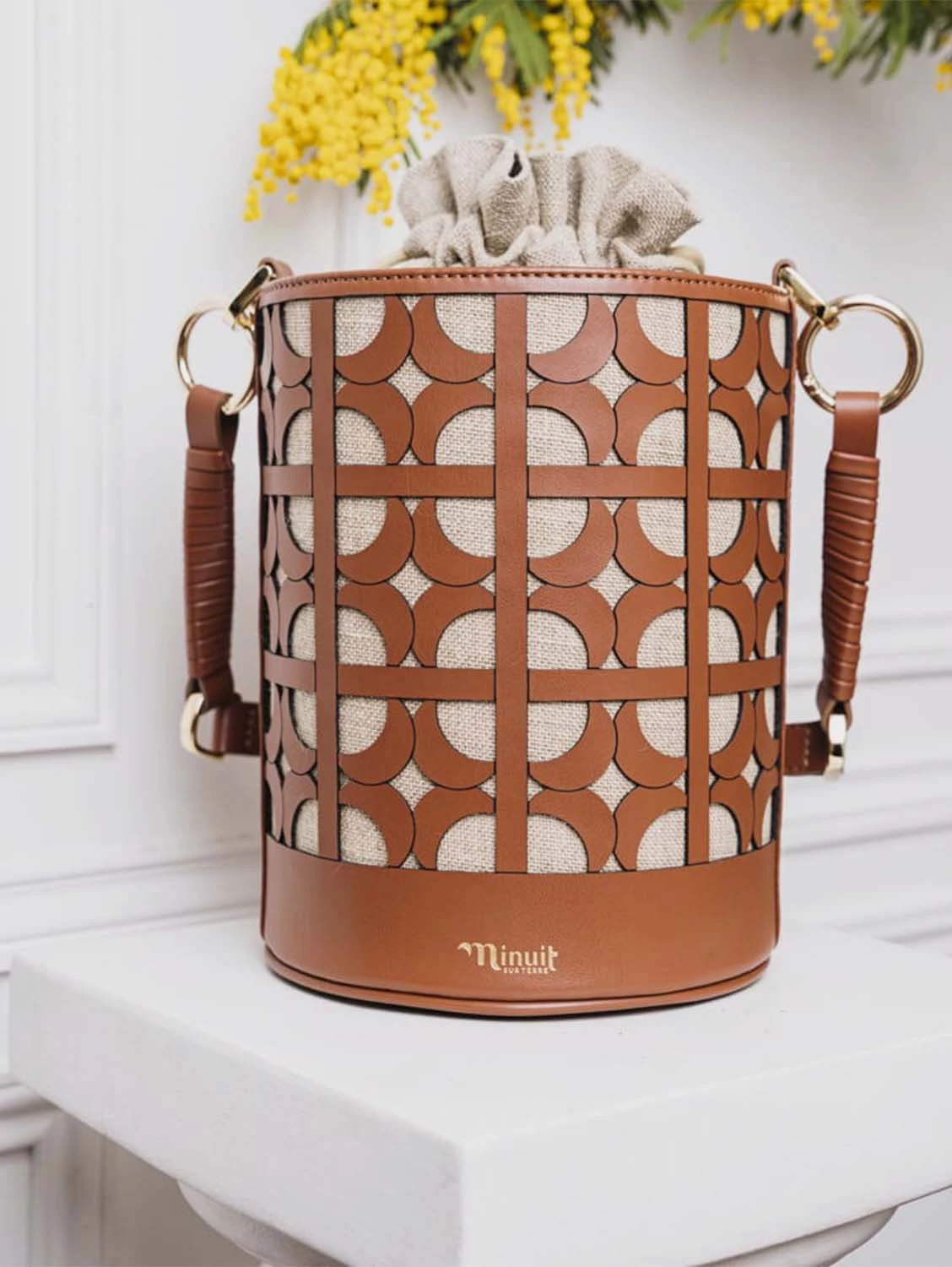 The Rhea handbag will leave no one indifferent! Its geometric cutouts in recycled material make it a bold piece packed with style.