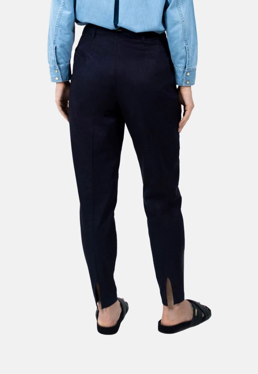 The smart trousers that can be dressed-up for formal events, but also dressed-down with the t-shirt for a casual occasion. High-waisted fit, featuring a slit at both leg openings on the backside for edge. Designed and made with 100% organic cotton for ease of mind, and available in earth tones that make it flexible to style.