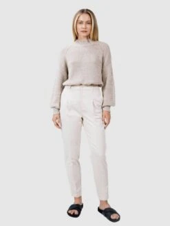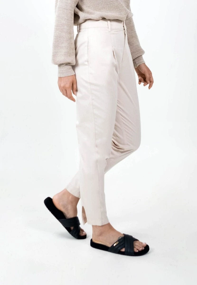 The smart trousers that can be dressed-up for formal events, but also dressed-down with the t-shirt for a casual occasion. High-waisted fit, featuring a slit at both leg openings on the backside for edge. Designed and made with 100% organic cotton for ease of mind, and available in earth tones that make it flexible to style.