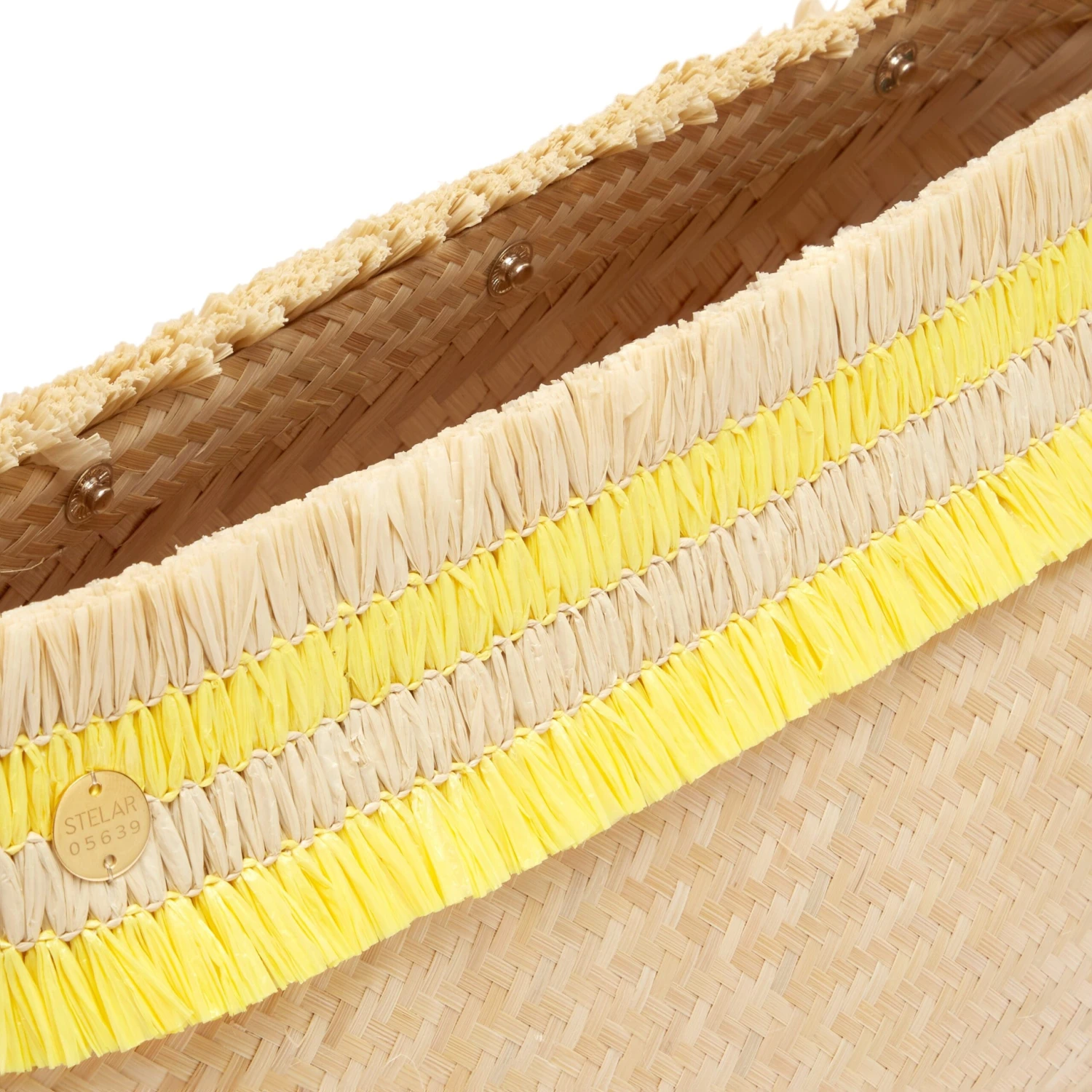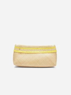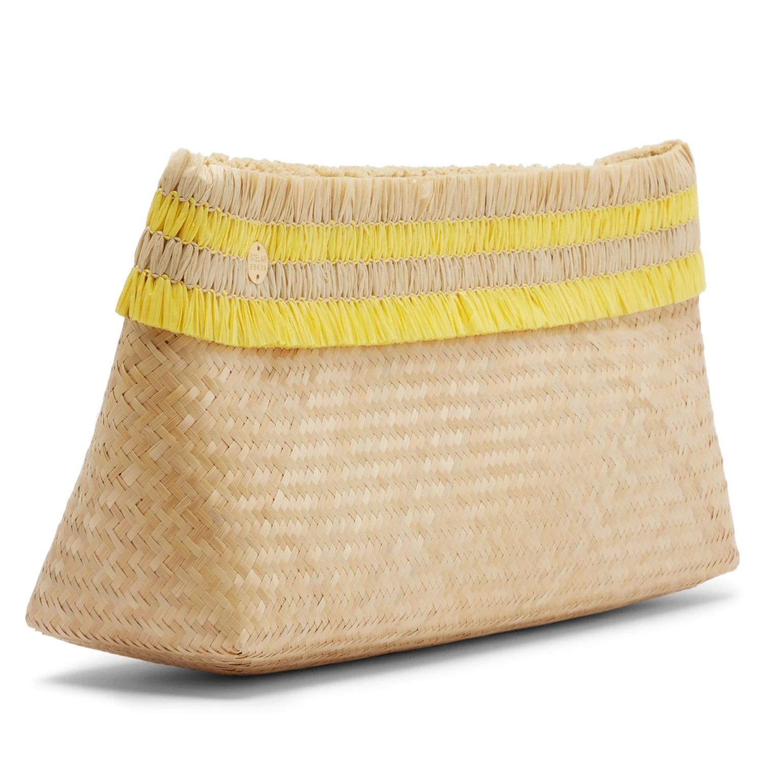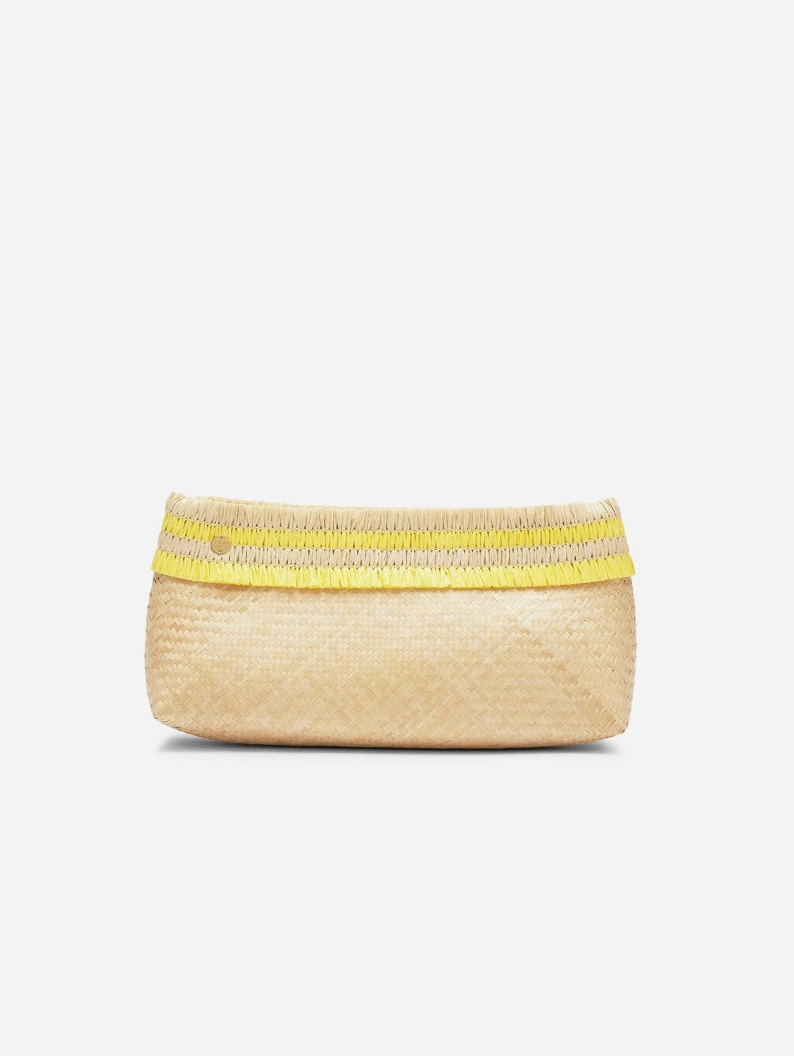 This chic handheld vegan bamboo clutch bag helps you to stay organised on the go. It is handcrafted with organic bamboo making it lightweight, robust and flexible, and is offset with playful raffia. Its statement oversized shape has a roomy interior and three discreet popper stud closures to help keep your belonging secure.