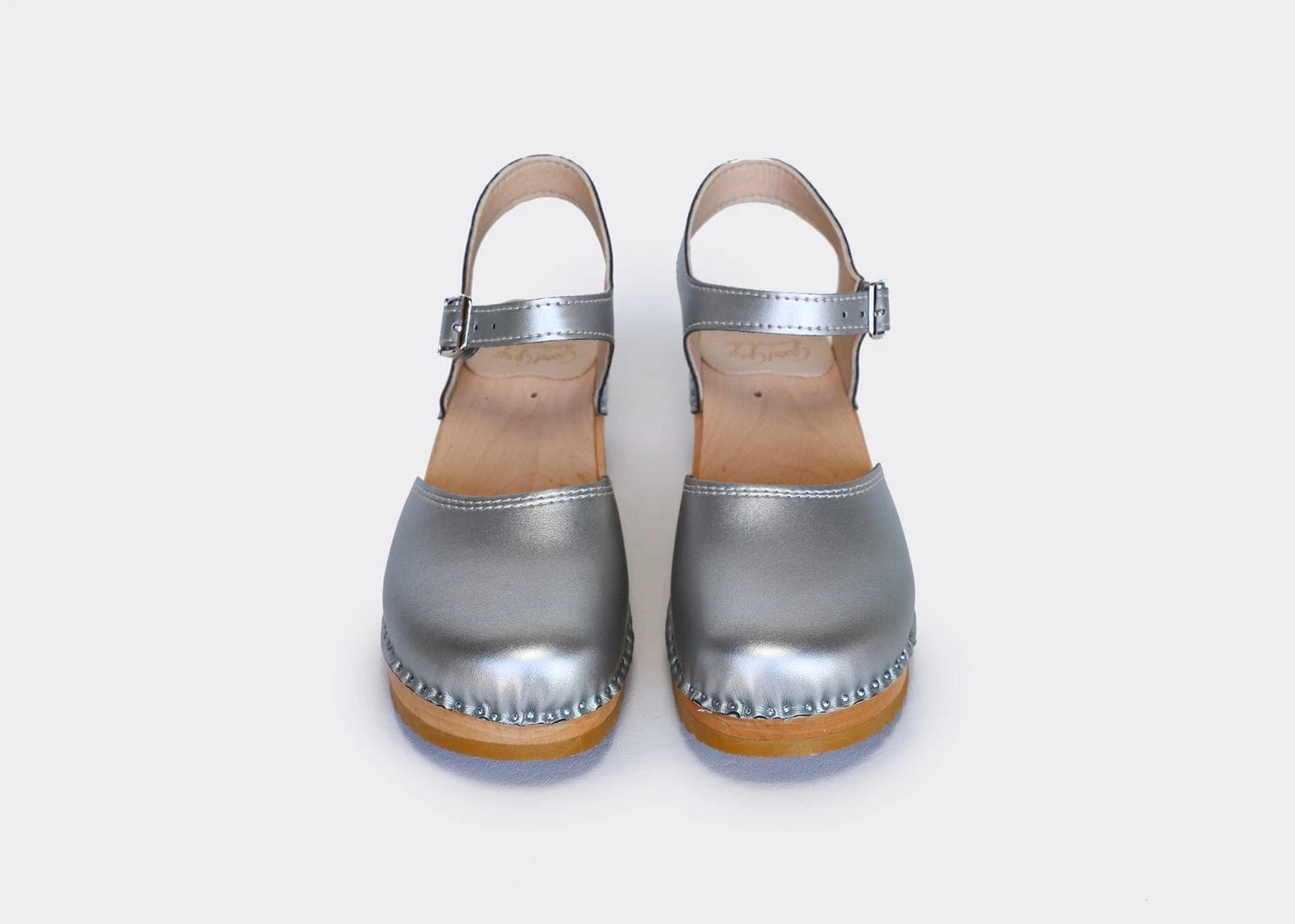 Enjoy the super cozy closed-toe clogs this Spring-Summer, the Sofia in a Silver version, the 100-year-old traditional “savoir-faire” of Troentorp Clogs meets the modern and timeless look of Vegan clogs with the cutting edge alternative to leather made of Apple waste.