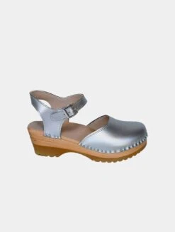 Sofia vegan clog sandals in Apple Skin Silverâ„¢ are the perfect combination of style and comfort. These stylish yet practical sandals feature a unique appleskin silver upper with an adjustable buckled strap for a perfect fit. They also offer maximum cushioning thanks to their durable rubber outsole, which provides superior shock absorption. With a nice and comfy fit, these vegan-friendly sandals are ideal for those who want to look good while still being conscious about animal welfare.Â