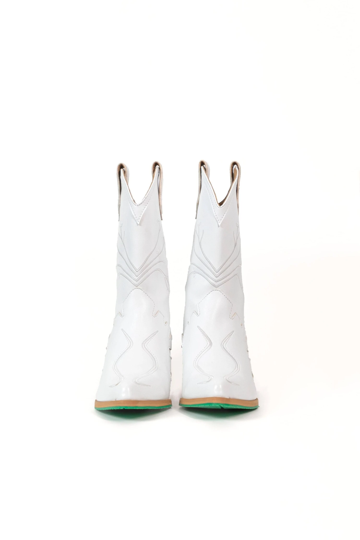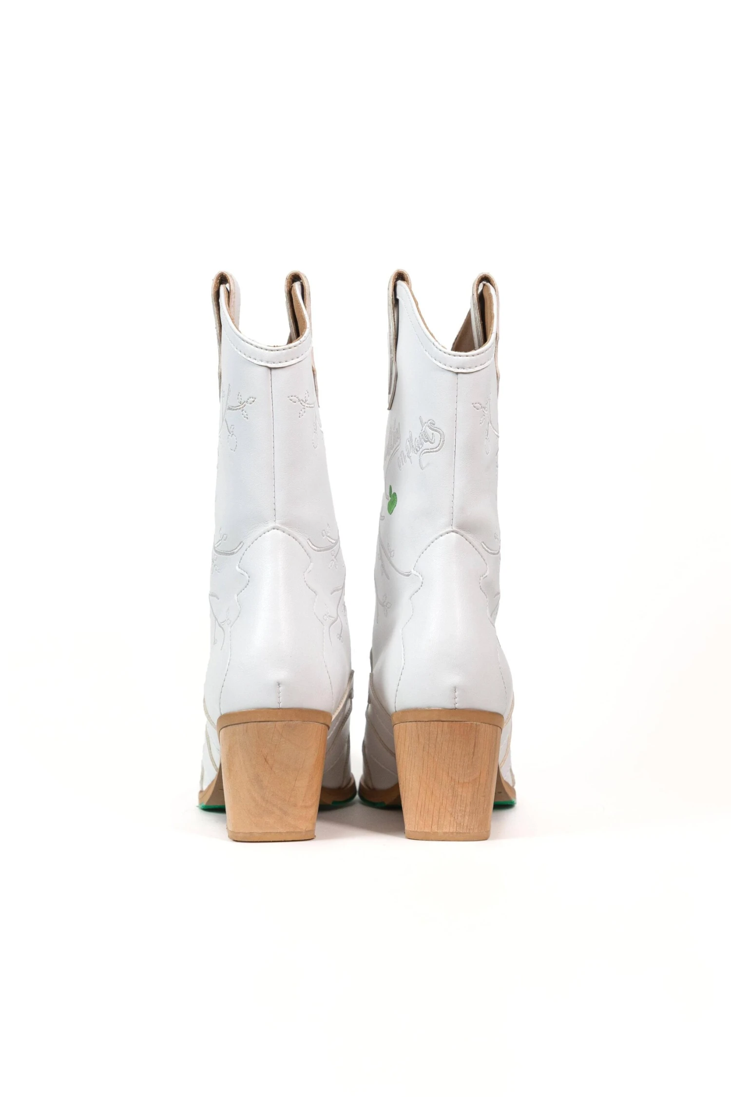 Our Sofie vegan boots in white are made of plant-based vegan apple leather with a beautiful ton sur ton embroidery with the text: Walking on Plants. The inside of the right boot has a small green apple as a unique detail. But we did not only think about the outside of these boots.