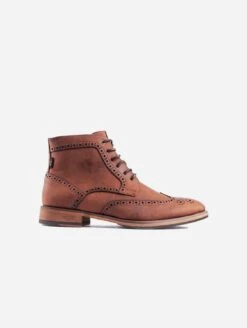 Enjoy fashion with a conscience. This men’s brogue boot is smartly finished with subtle branding details. This lace-up style is free of animal products, is PETA approved and is made in a vegan certified factory.